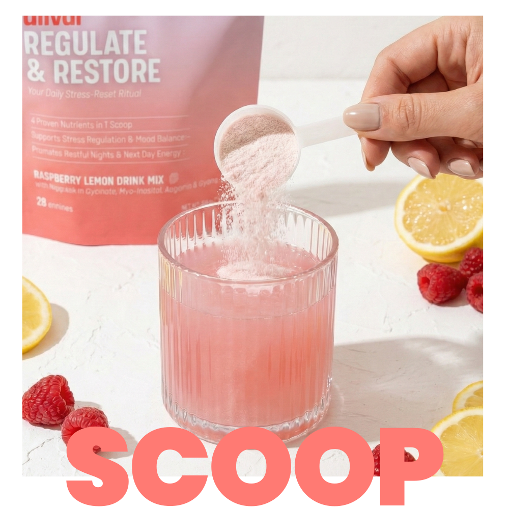 Regulate & Restore supports key hormonal pathways that influence energy, focus, mood, and metabolism. By helping regulate cortisol and insulin, it keeps your hormones in sync — reducing bloating, cravings, and emotional reactivity while supporting clarity and calm all month long.